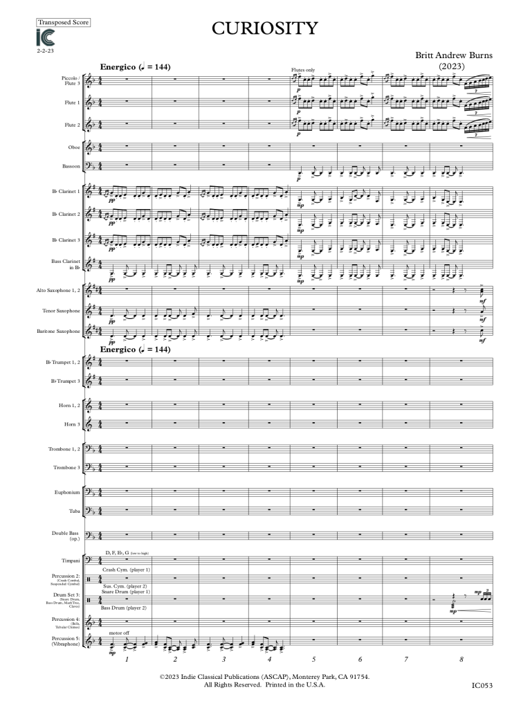 I’m very excited to announce that I finally completed CURIOSITY for wind band. The work still needs parts edited, but the writing is finished. It will be available from my own label in about a week. I will see if there’s any publisher interest for this work in 2023.