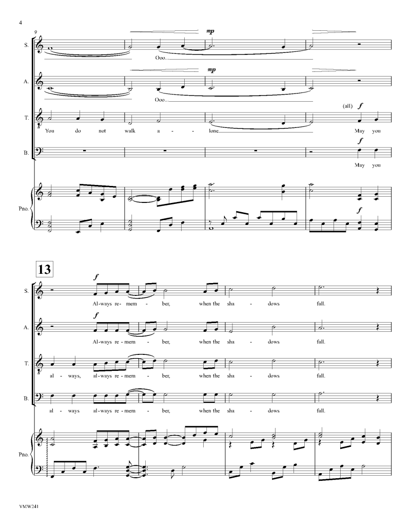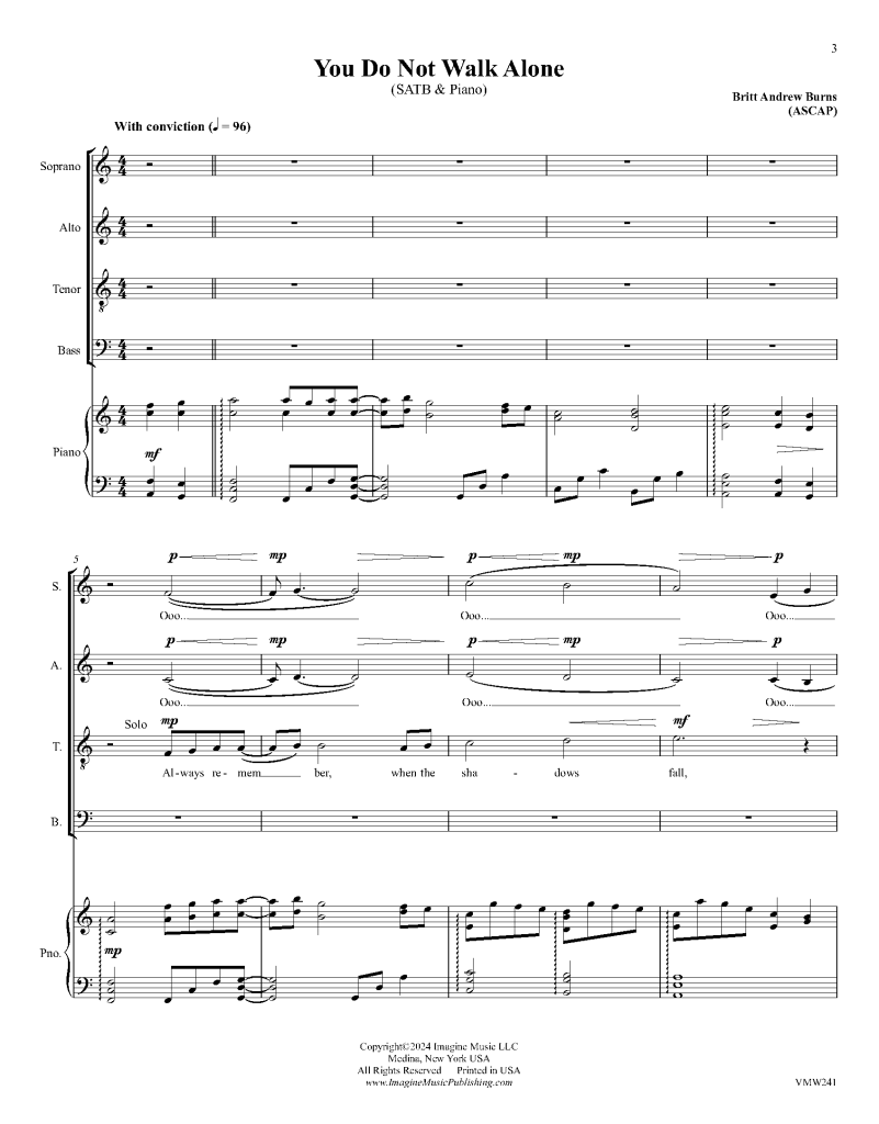 You Do Not Walk Alone (2023) – SATB with piano – grade published by Imagine Music