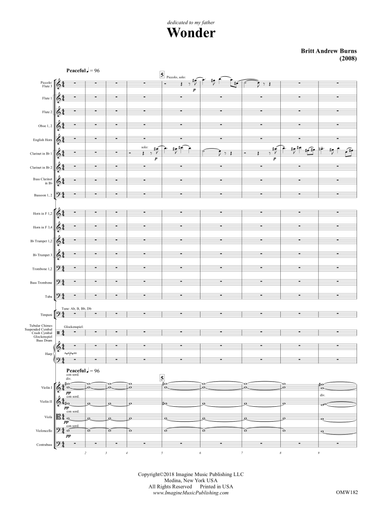 Wonder (2008) – (grade 4) – published by Imagine Music – $90.00 / $63.00 (digital) Preview the Full Score J.W. Pepper Editor’s Choice